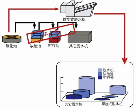 本身設(shè)計(jì)小型節(jié)省占地空間和建設(shè)成本,無須建設(shè)濃縮池,貯存池減輕污泥儲存時發(fā)生的磷釋放和厭氧臭味。