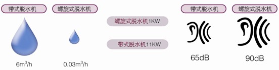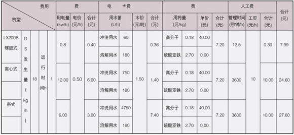 在處理量相同的前提下,螺旋式運(yùn)行成本為7.99元/h,離心式為24.6元/h,帶式為27.6元/h,相對而言,螺旋式運(yùn)行成本為離心式的1/3,是帶式的1/4左右,若以一天8小時工作時間,工作一個月計(jì)算著得出: