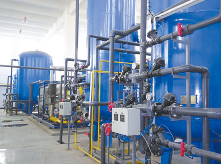 雙室浮動床是在單室浮動床中裝設(shè)一塊帶雙頭水帽的多孔板,分成兩室,上室裝填強型樹脂.下室裝弱型樹脂。在雙室浮動床中,兩種樹脂各自為對方提供了有利的工作條件,即弱型樹脂為強型樹脂提供了高再生水平。從而提高了強型樹脂的工作交換容量,而強型樹脂又允許弱型樹脂有較高的漏過,充分發(fā)揮了弱型樹脂的特長,這樣將提高再生效率、高再生容量的弱型和在高再生水平下工作的強型樹脂聯(lián)臺應(yīng)用于水的化學除鹽,可以在1013的再生比耗下,使陽離子交換工藝的平均工作交換容量達到1300—1 700mep/LR,陰離子交換工藝的平均工作交換容量達到600- 900mep/LR,這是其它工藝所達不到的。另外,雙室浮動床還具有用水率低,運行操作簡單及可在高流速下運行等特點。
