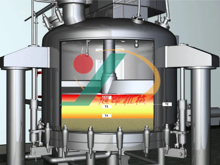 (5) 攪拌漿葉的升降和攪拌,使得清洗時濾餅和清洗液充分混合,濾餅得到充分洗滌,提高效率